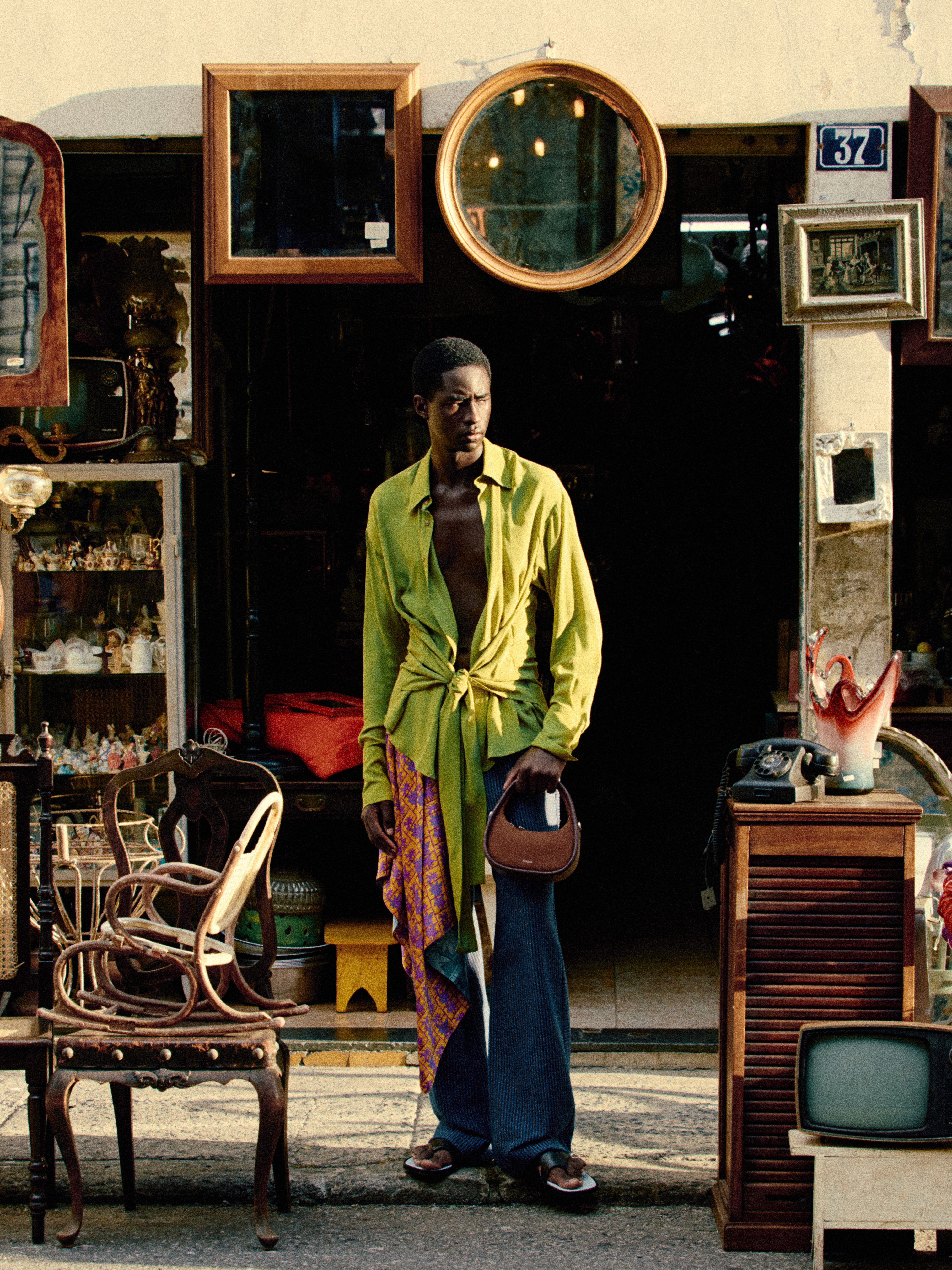 As imagens foram realizadas em pontos que traduzem essa dimensão cultural da cidade, como o Beco do Rato, na Lapa — símbolo da resistência do samba; uma barbearia no Morro da Conceição, no bairro da Saúde, onde tradição e cotidiano se cruzam; um antiquário e o Bar Armazém do Senado, no Centro, espaços que preservam camadas da história urbana; e a Enseada de Botafogo, com sua paisagem que equilibra natureza e arquitetura. Cada locação amplia o discurso da coleção ao colocar a moda em diálogo direto com o Brasil.