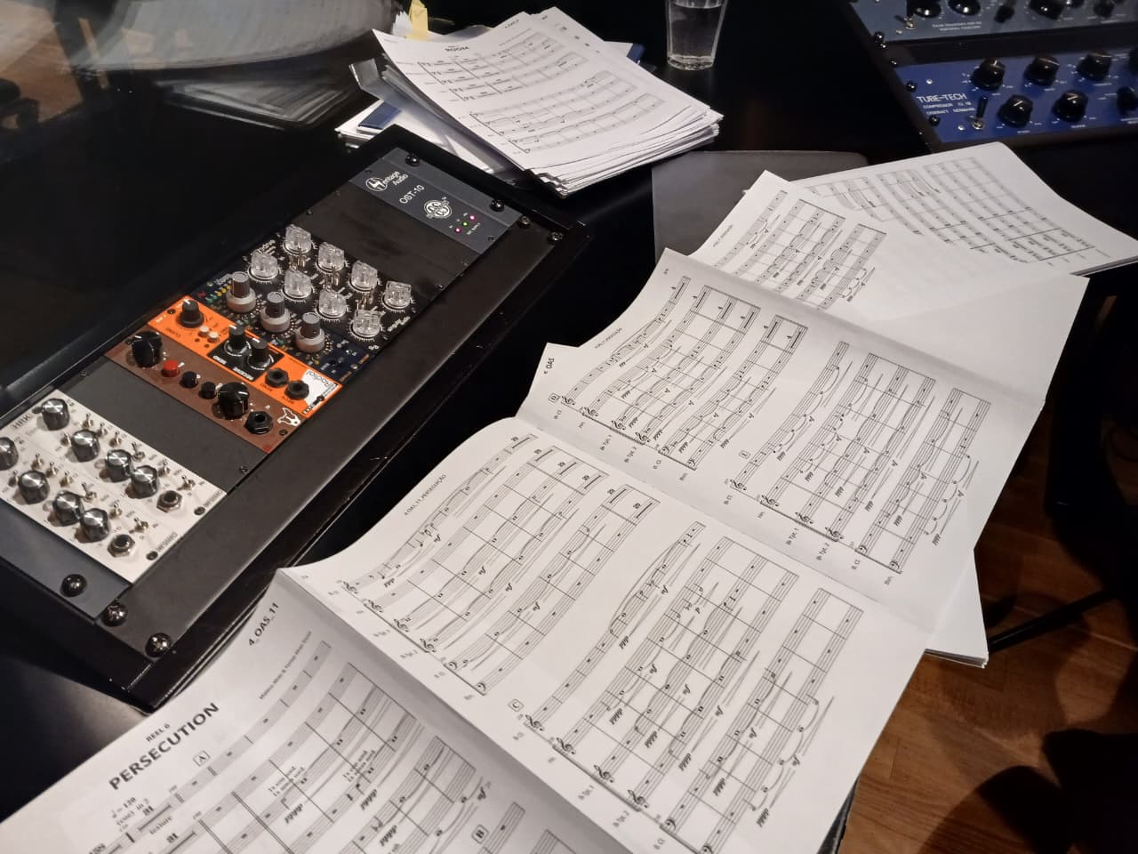 M.A: Em “Bacurau” lembro que Kleber e Juliano convidaram a gente para assistir um corte que ia até a metade do filme. Ficamos bastante impactados com o visual etc e percebemos que a música “Bichos da Noite”, que toca na agora antológica cena do funeral no começo do filme, tinha uma força muito grande. Começamos a compor a partir dessa faixa. Durante o processo novas ideias foram naturalmente surgindo e lembro que eu e meu irmão fizemos uma divisão de trabalho onde ele ficou mais focado no núcleo dos personagens gringos e eu na vila Bacurau e seus moradores. Entretanto, sempre é natural as coisas se misturarem num processo como esse e hoje em dia tenho até dificuldade de lembrar quem fez o quê.